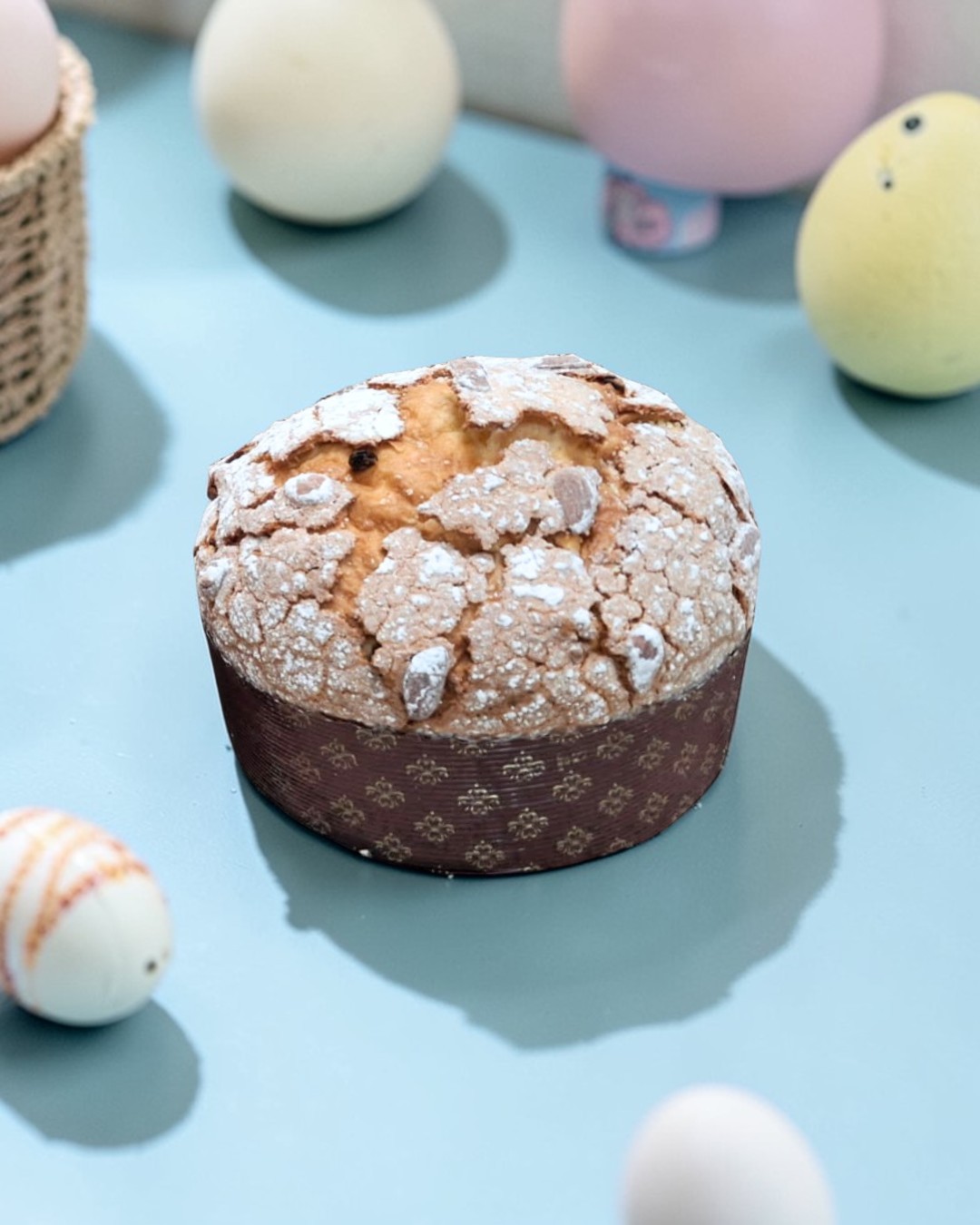 Fabriqué artisanalement dans notre fournil, ce panettone au levain naturel offre une mie incroyablement moelleuse, aérée et parfumée. Généreusement garni de fruits confits et de raisins secs, il dévoile une douceur subtile et une richesse aromatique qui en font un véritable plaisir de saison.